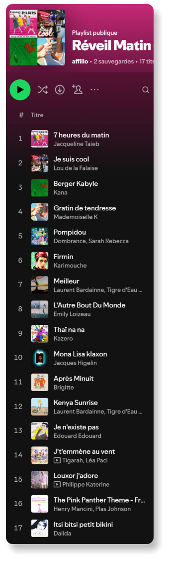 Groupe de reprises de chansons françaises, qui réveillent l’esprit autant qu'elles charment les oreilles : 50% de chansons que vous connaissez, modernisées, 50% de la nouvelle scène française, que vous allez adorer découvrir. Résultat : 100% de chansons festives et dansantes ! Marjolaine - Chant Anne-So - Guitare Basse Gwen - Batterie, Chant Xavier - Saxophone Brigitte - Son Ecoutez un extrait ! : Infos & Réservations : 06 60 67 1234 info@ReveilMatin.ovh